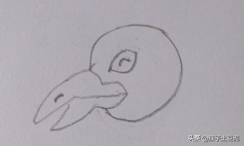 1、先画乌鸦的头部,长长的嘴巴、眼睛、圆圆的脸。