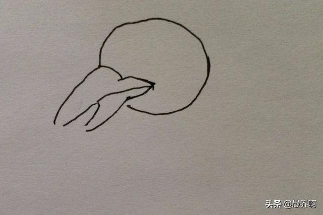 1、我们准备好笔和纸,先画出乌鸦圆圆的脑袋。把嘴巴那里先留着不画。
