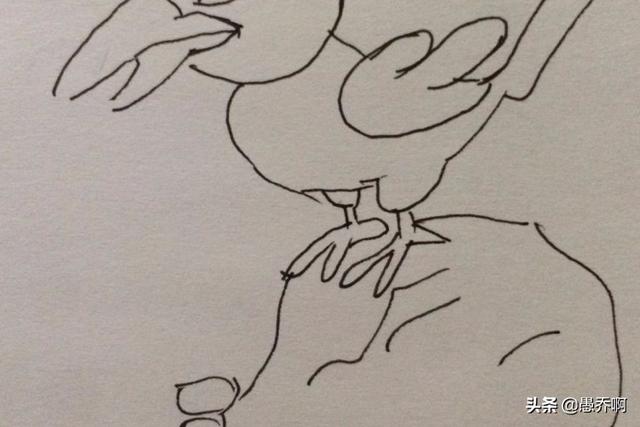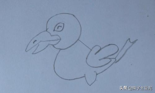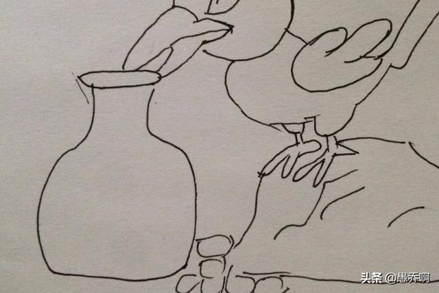 6、然后在乌鸦嘴巴下面画出瓶子的口。