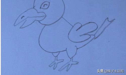 2、画乌鸦的身体、翅膀、尾巴,还有一条腿。